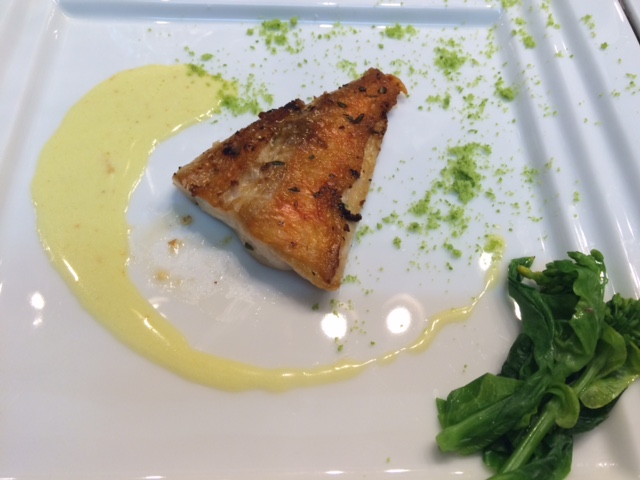 魚料理は「金目鯛のポワレ橙のソースとグリンピースのパウダー」