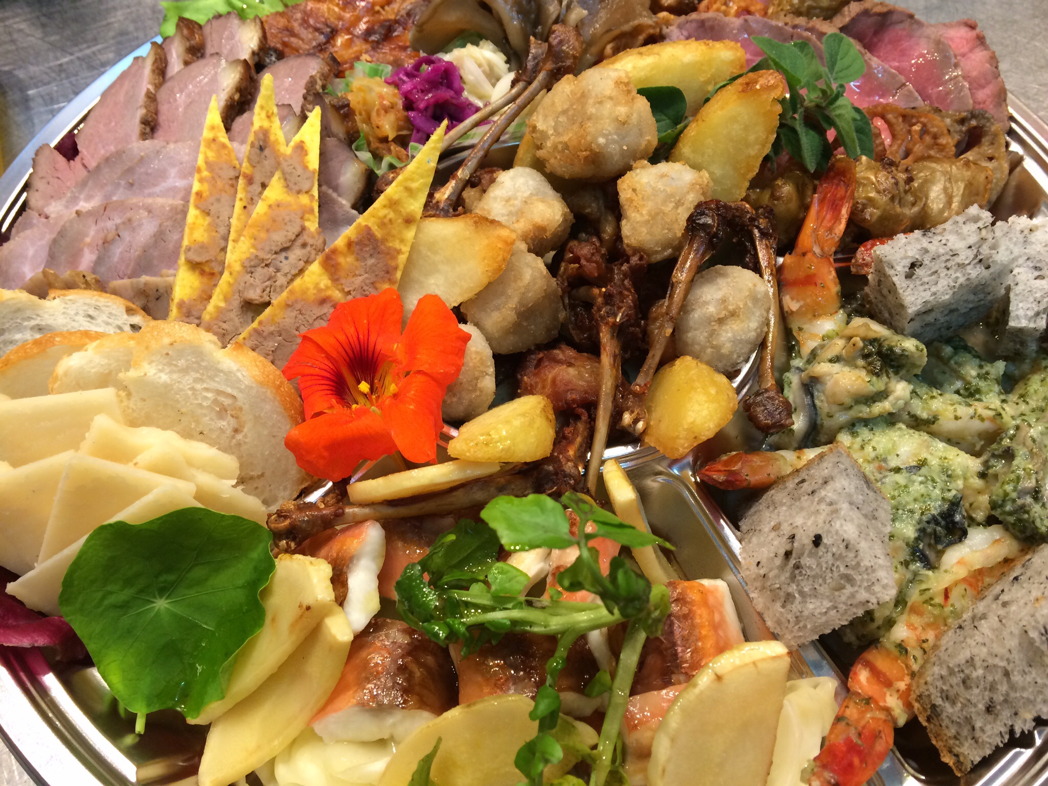 赤やがらのポワレ、ローストビーフ、ウズラ肉のロースト、パルミジャーノ、レバーパテなど盛り沢山でした!!