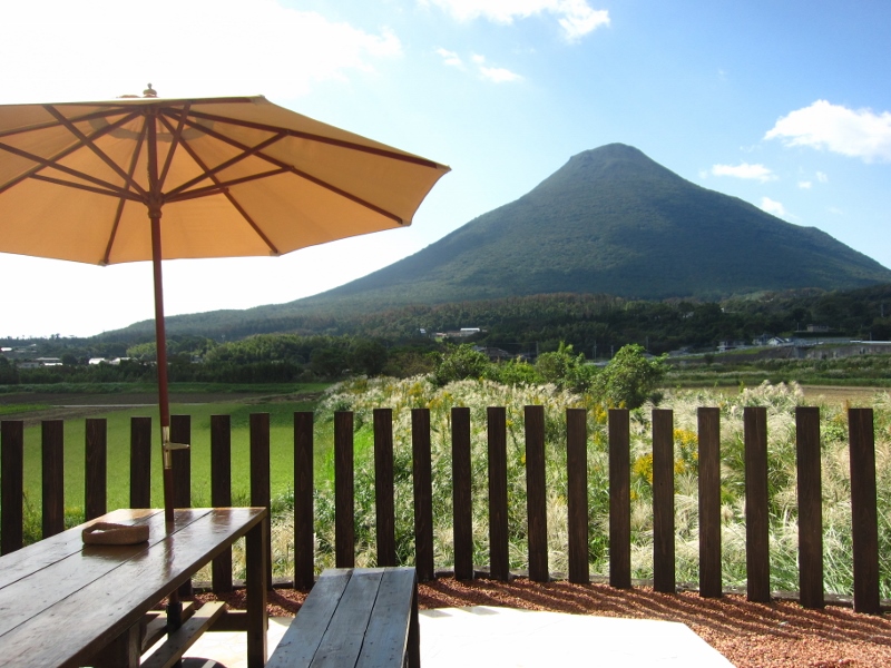 指宿の開聞岳を間近に望むテラス席!!
